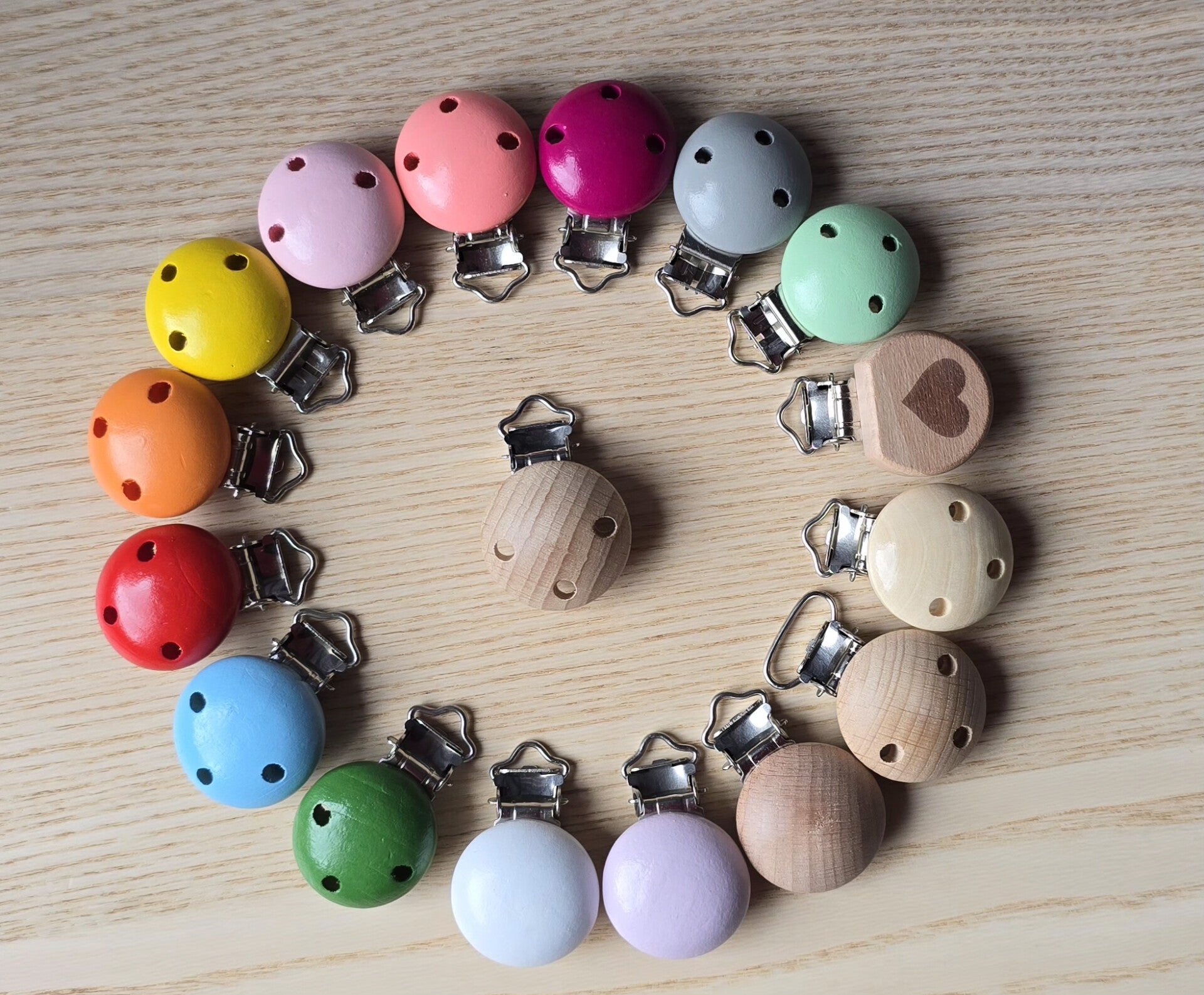 Vous avez la possibilité de choisir le clips de l'attache. Si vous ne changez pas le clips sera en bois neutre