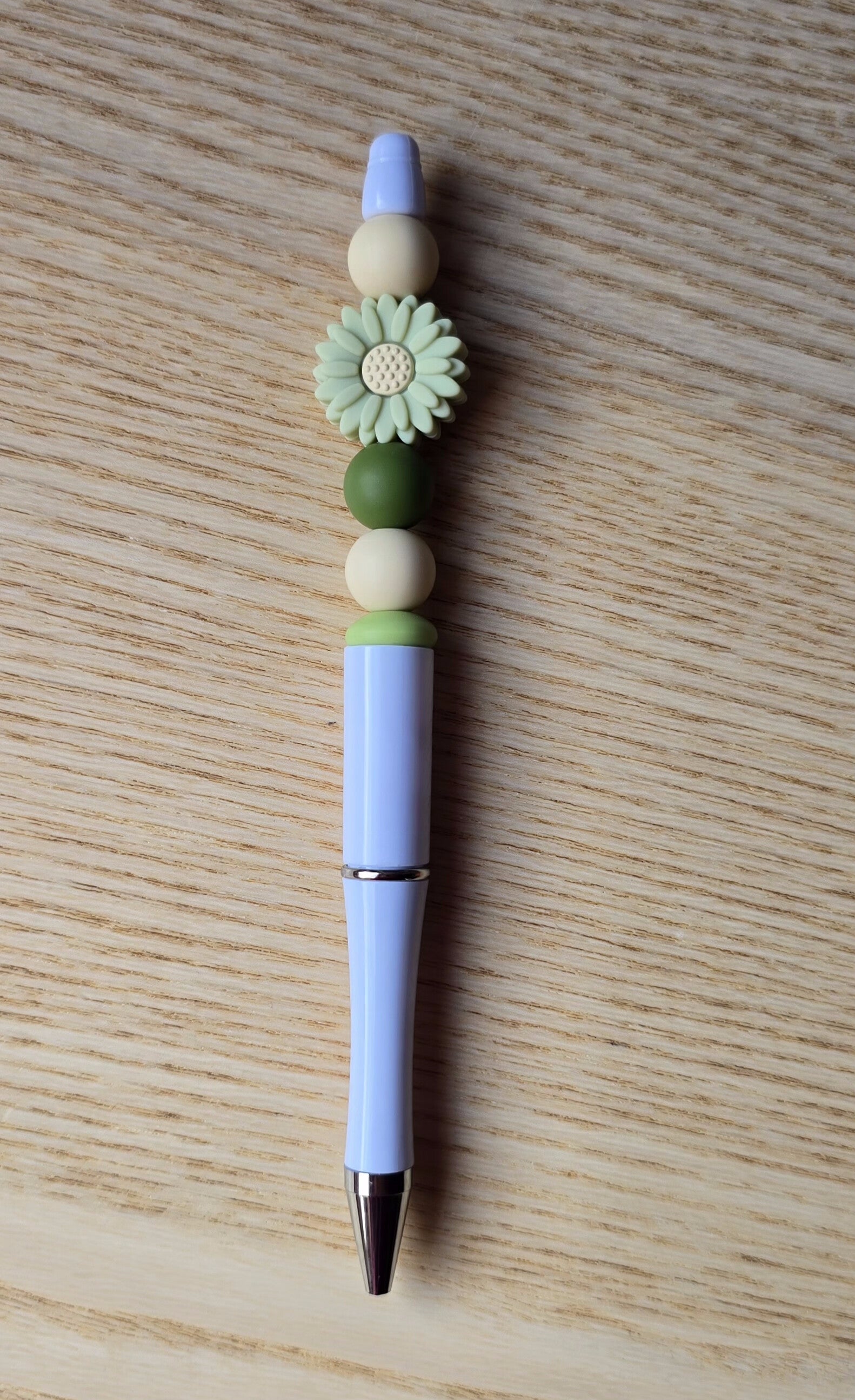 Stylo blanc ptite fleur verte